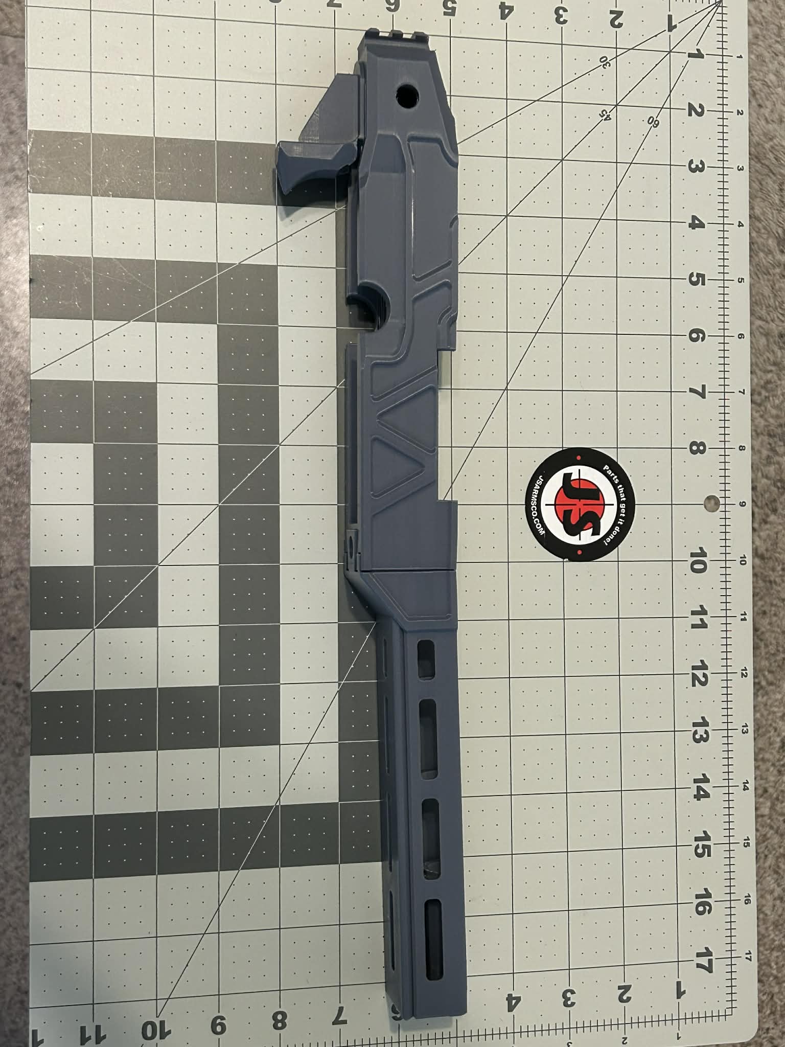 - Receiver with Angled styling and 1913 picatinny rail for stock you provide