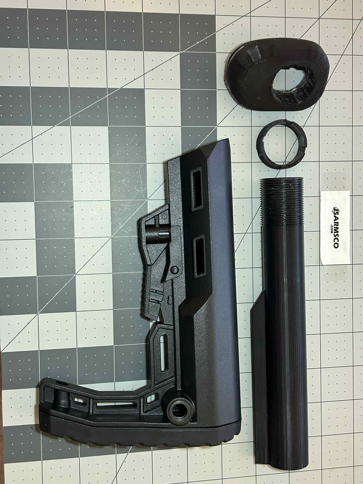 - Entire AR style buffer tube is reinforced with 1/2" schedule 40 PVC pipe, for a total of 7mm thick walls. We did a weight test and it held 27lbs with no issues (see pictures)