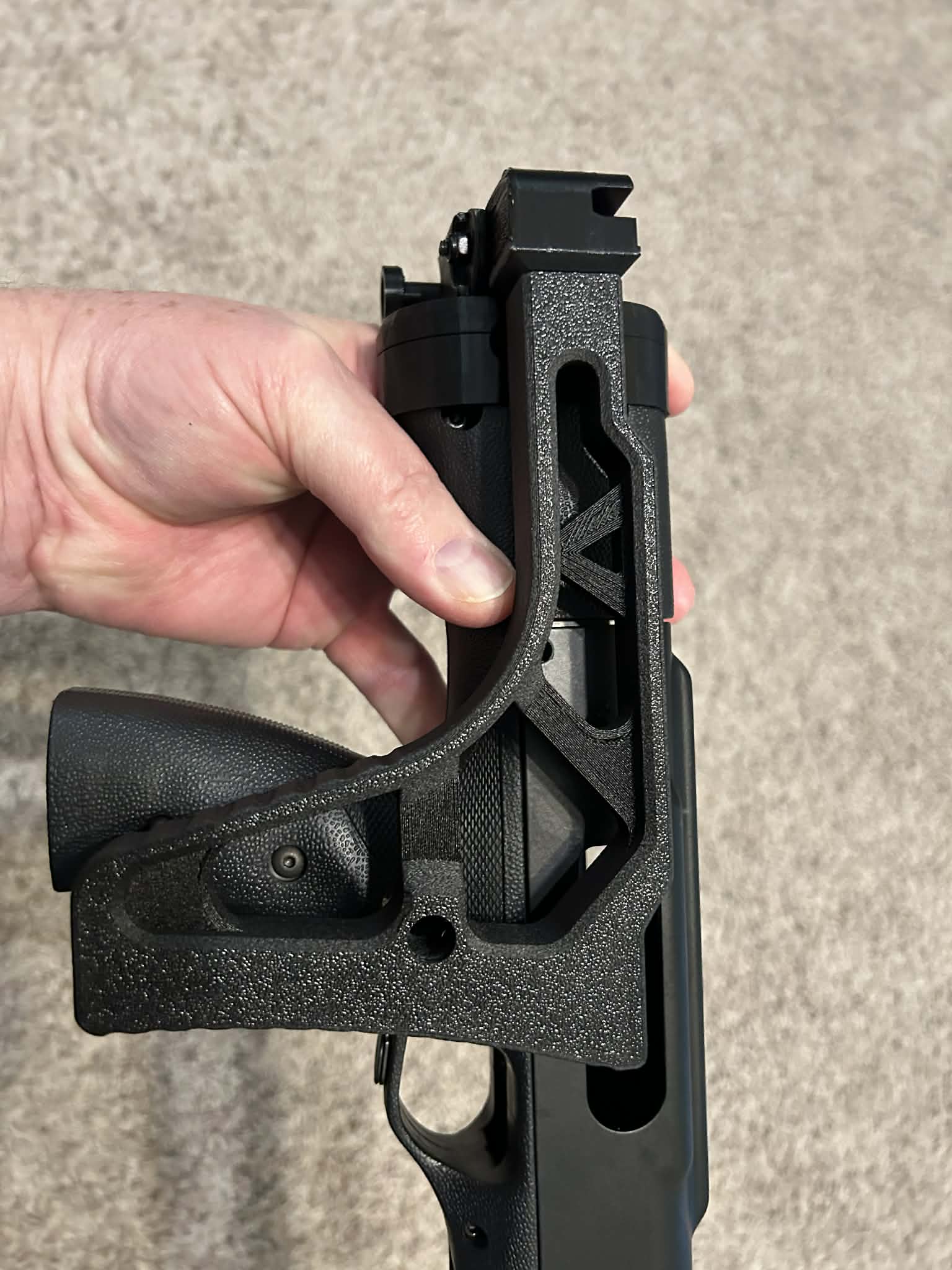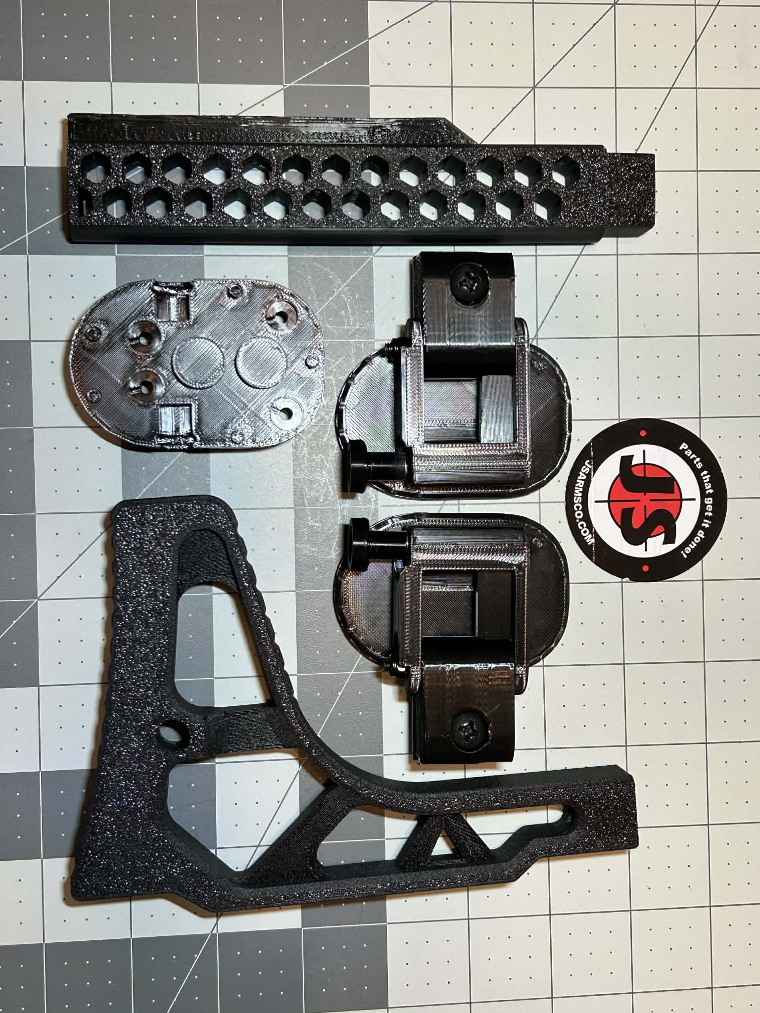 - One cut 2 piece integrated folding stock adapter plate with mounting hardware (epoxy not included) and it has built in QD cups on either side for single point sling attachment. Other items in the pictures or shown demonstration purposes and do not come as part of this kit.