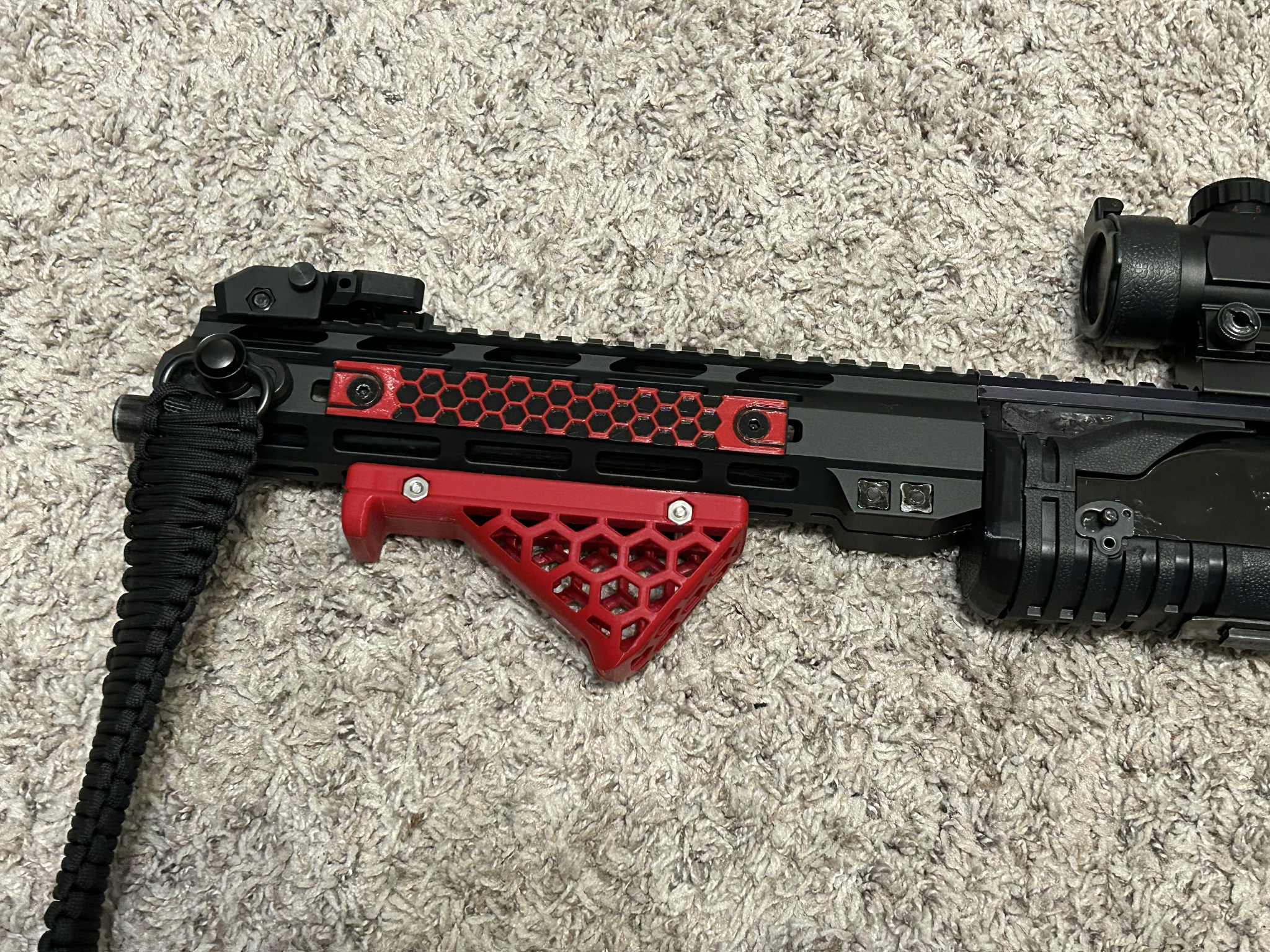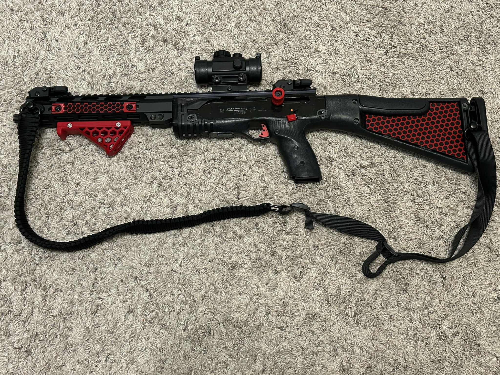 JSARMSCO.com HEX pattern in Fire Engine Red (all 3D printed except the charging handle bolt and MLOK handguard) Hi Point upgrade Carbine Kit.